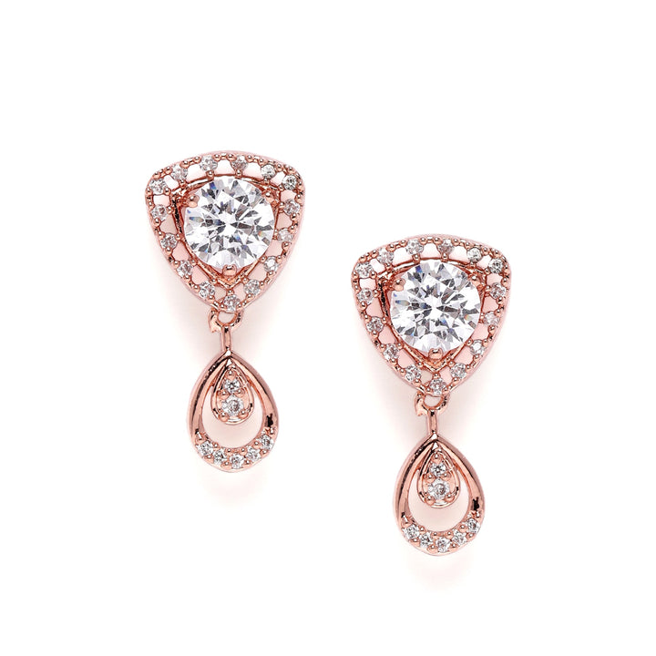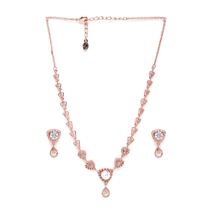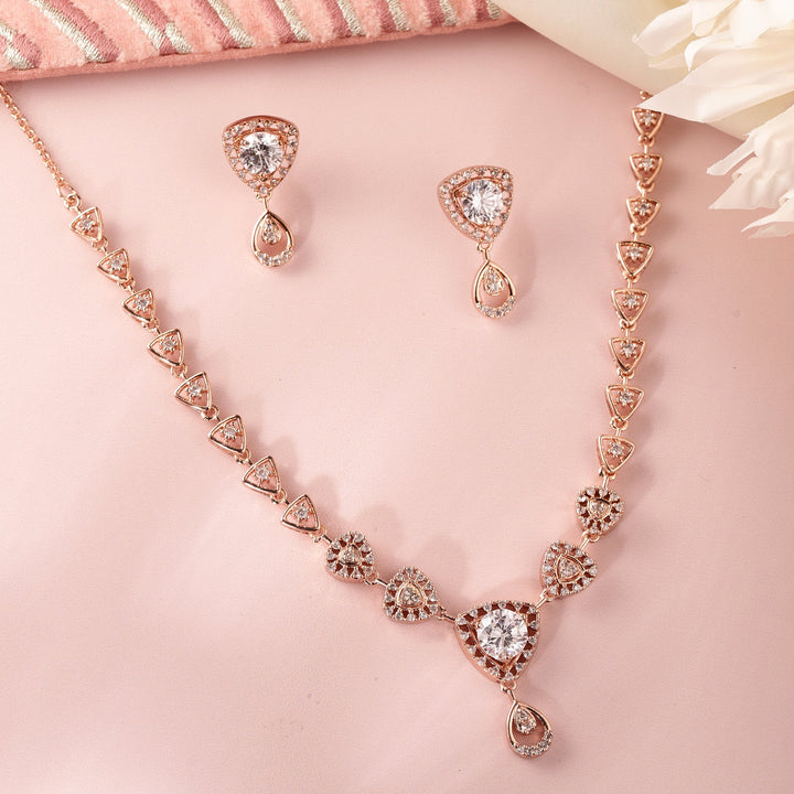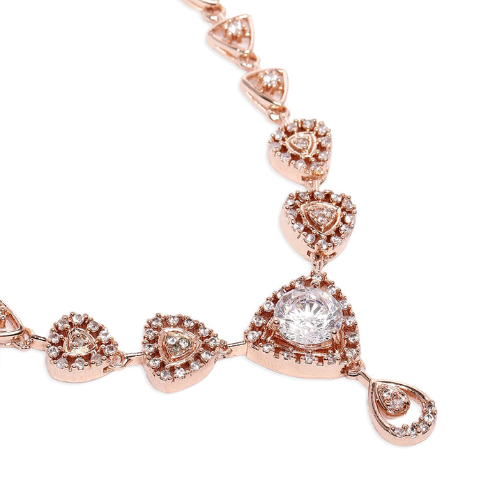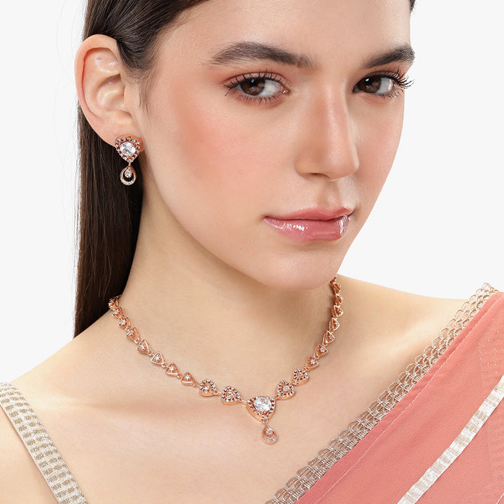Estele Crystal Blooms Exclusive Rosegold-Plated American Diamond Necklace Set for Women: Dazzling Sparkle with a Lightweight, Premium Feel