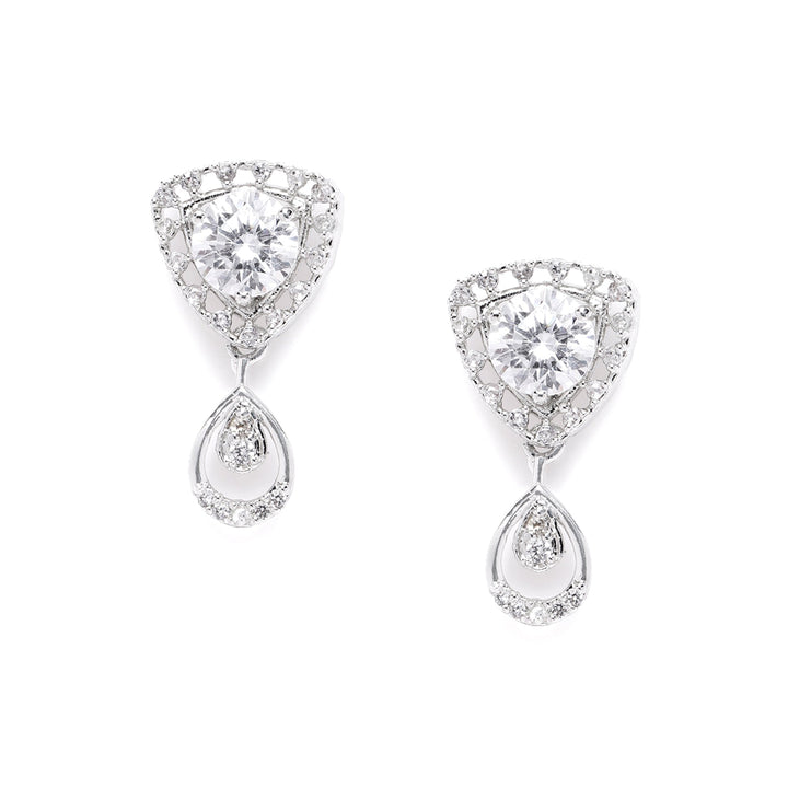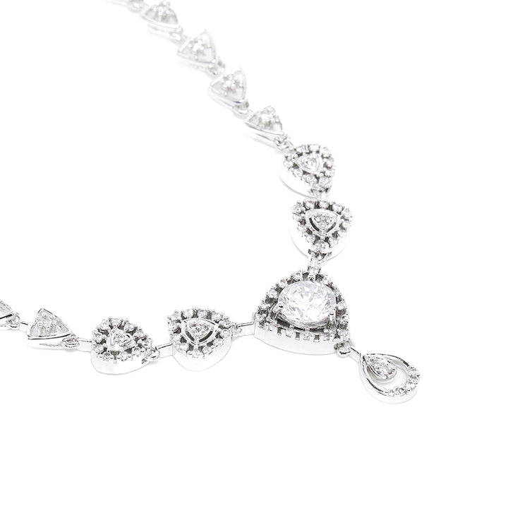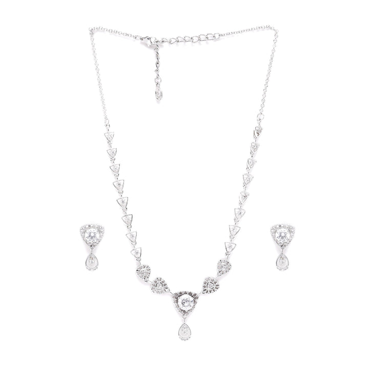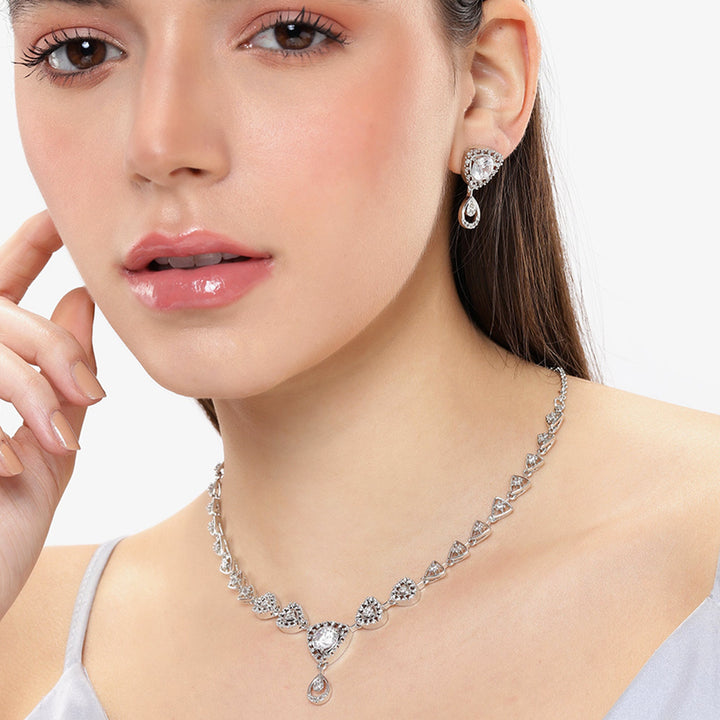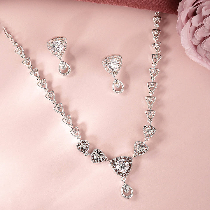 Estele Crystal Blooms Feather-Light Rhodium-Plated American Diamond Necklace Set for Women: Exclusive, Sparkling Premium Design