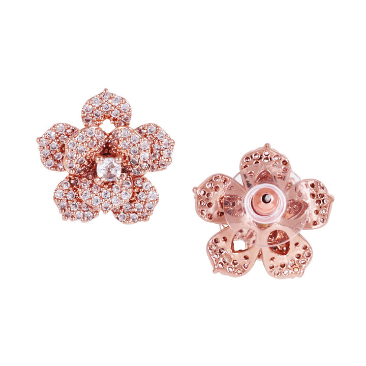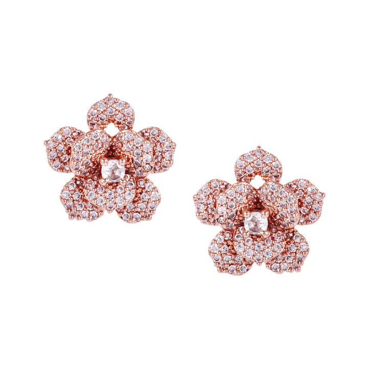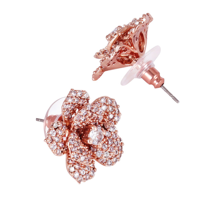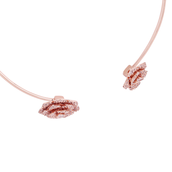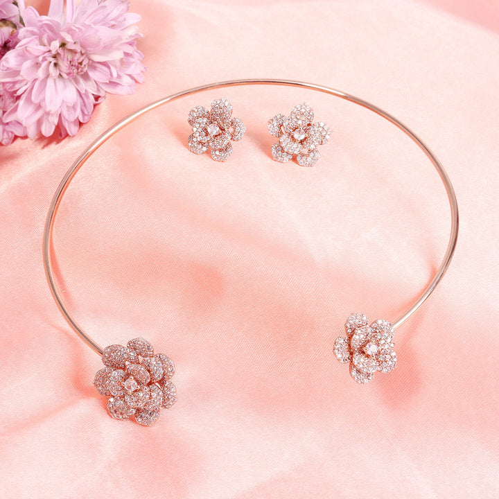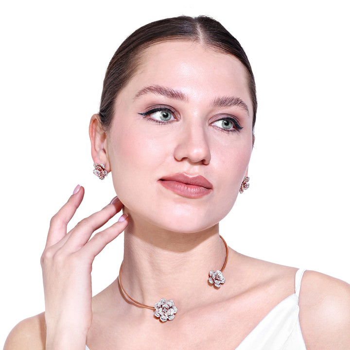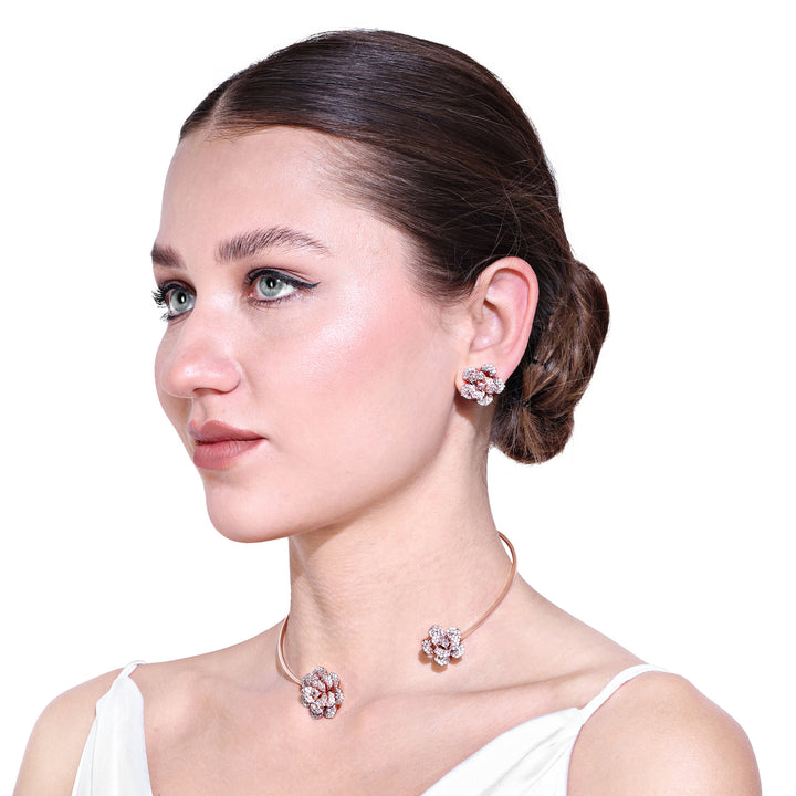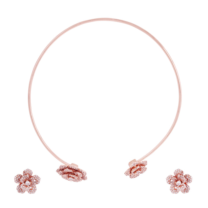 Estele Rose Collection Luxurious Lightweight White American Diamond Rose Motif Necklace Set with Rosegold FInish A Dazzling Gift of Eternal Love