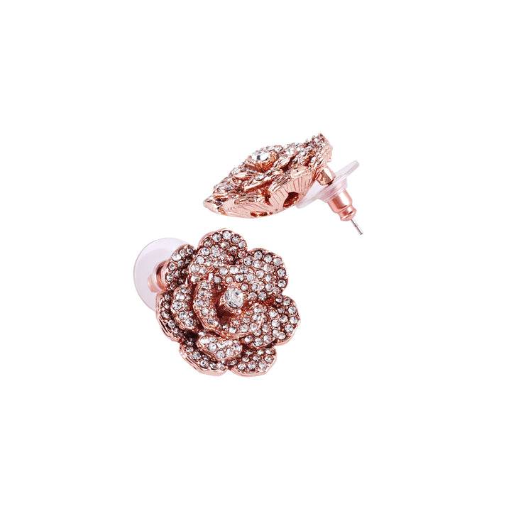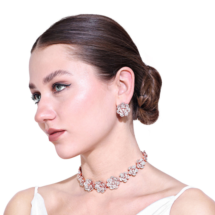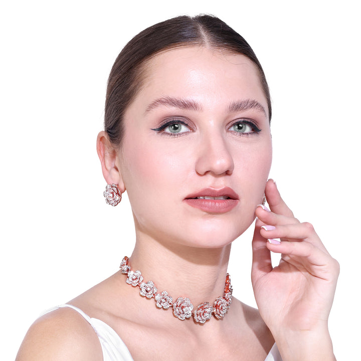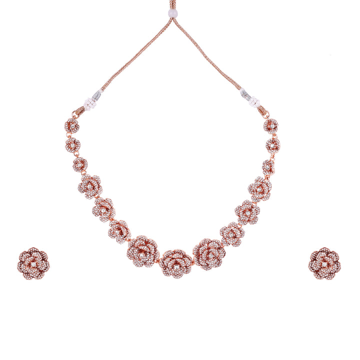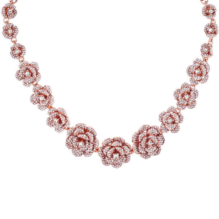 Estele Rose Collection Luxurious Rosegold Plated Rose Motifs Necklace Set with Sparkling White Austrian Crystals|A Beautiful Gift of Eternal Gift
