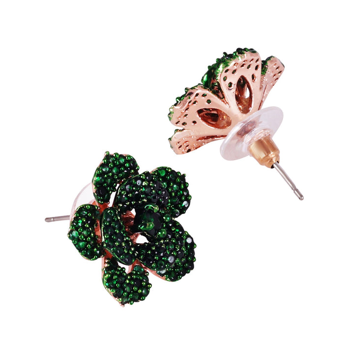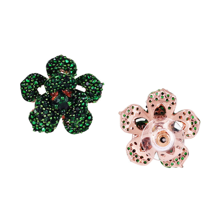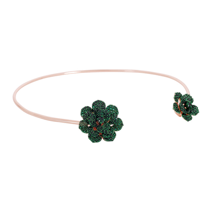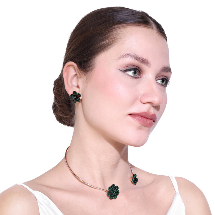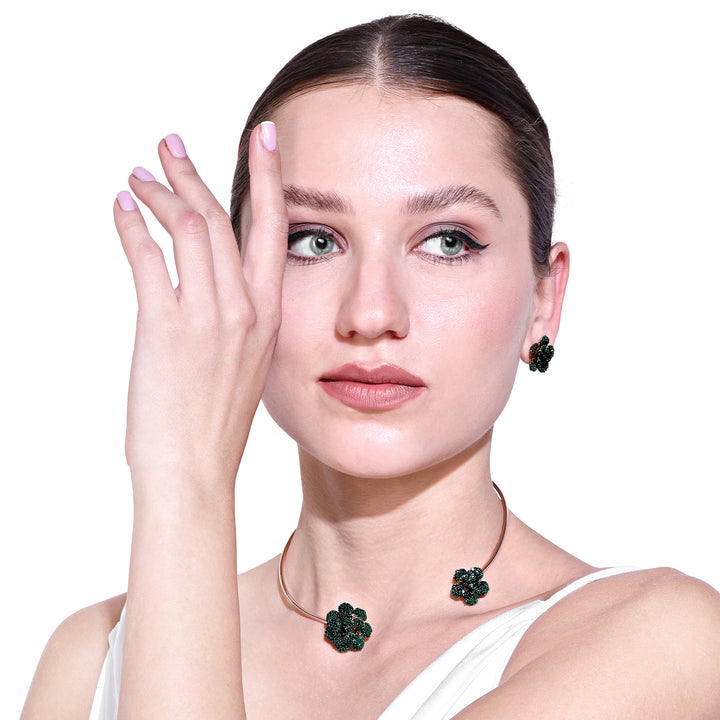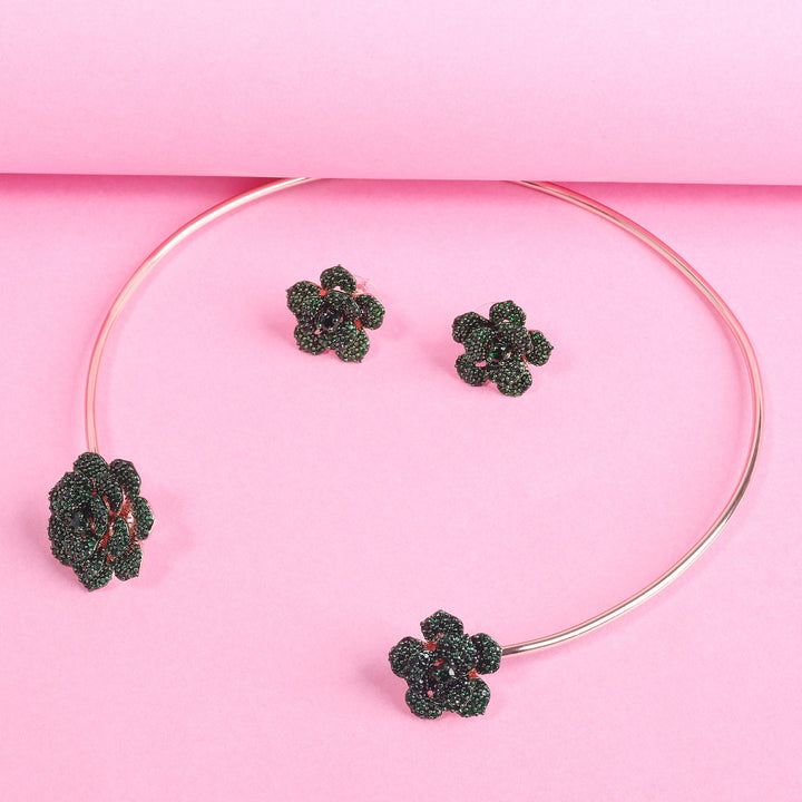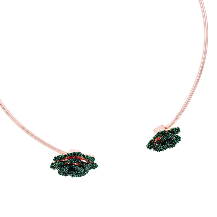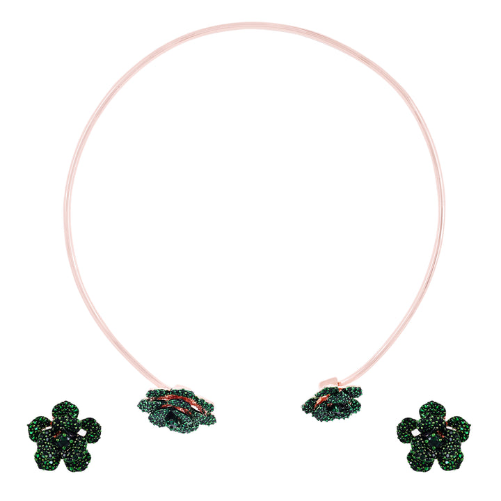 Estele Rose Collection Sparkling Lightweight Green American Diamond Rose Motif Necklace Set with Rosegold Finish A Dazzling Gift of Eternal Love