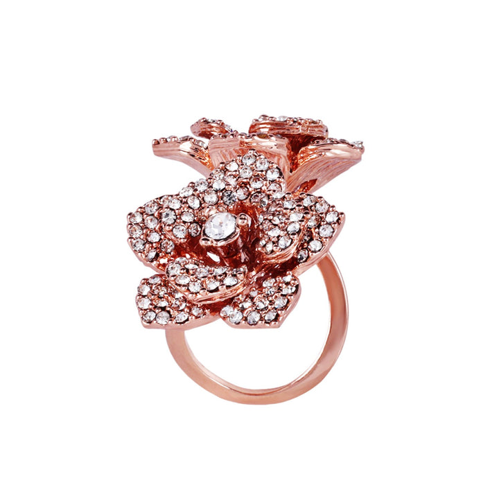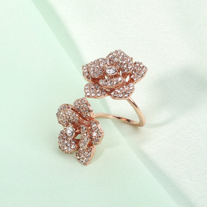 Estele Rose Collection Trendy Lightweight Rose Motif Adjustable Finger Ring: Flexible Jewelry with Premium Rosegold Finish for Women
