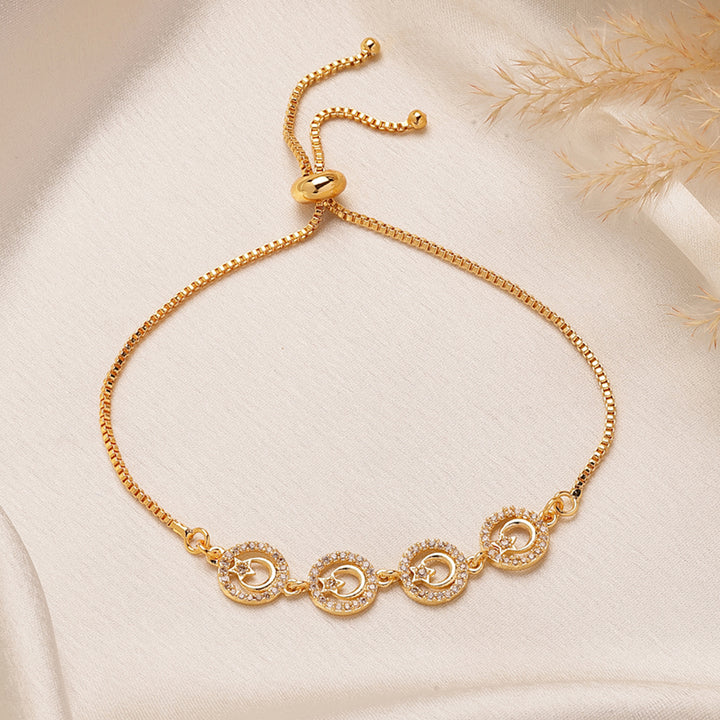 Exquisite American Diamond Round Motif Bracelet – Gold Finish, Airy-Light Party & Sangeet Look