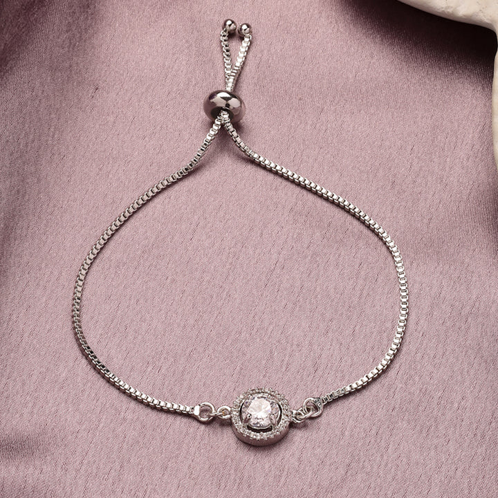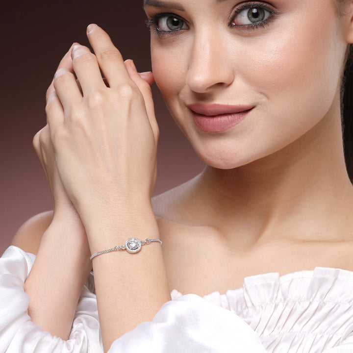 Fashionable American Diamond Round Bezel Chain Bracelet Lightweight Everyday to Party for Wmoen