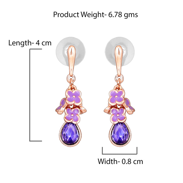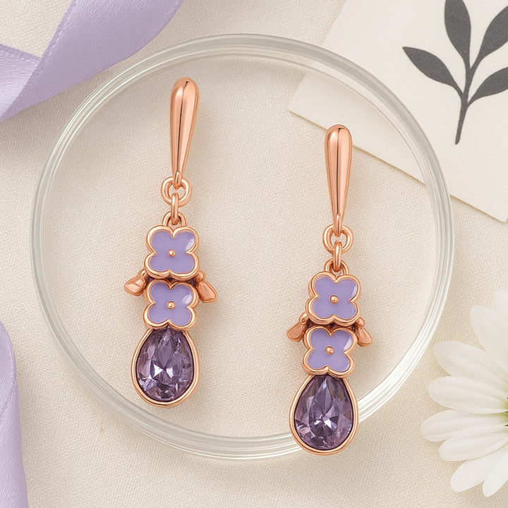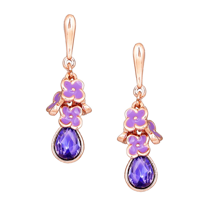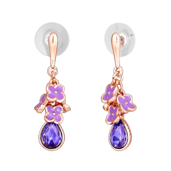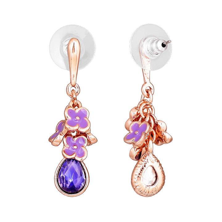Gift Estele purple coloured rose gold plated charms hanging earrings for women