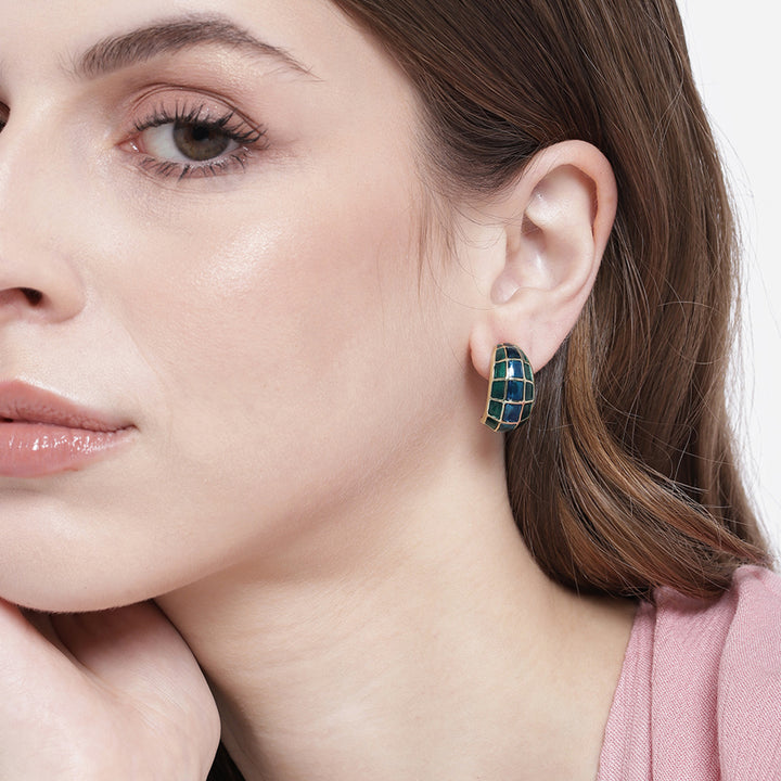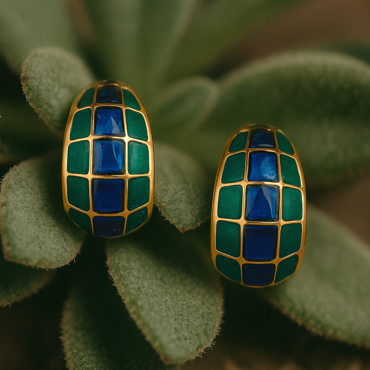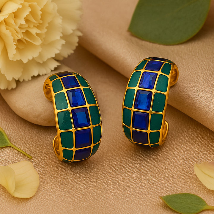Gold Plated Blue & Green Enamel Stud Earrings