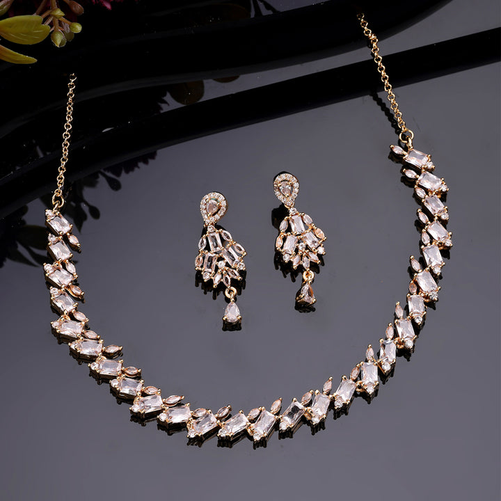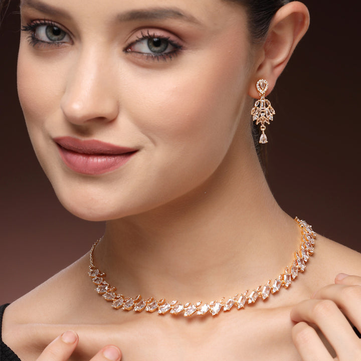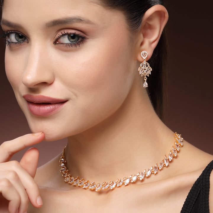 Lavish Exclusive Gold Plated American Daimond Necklace Set – Premium Lightweight Party Jewelry for Women