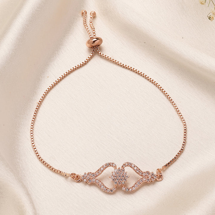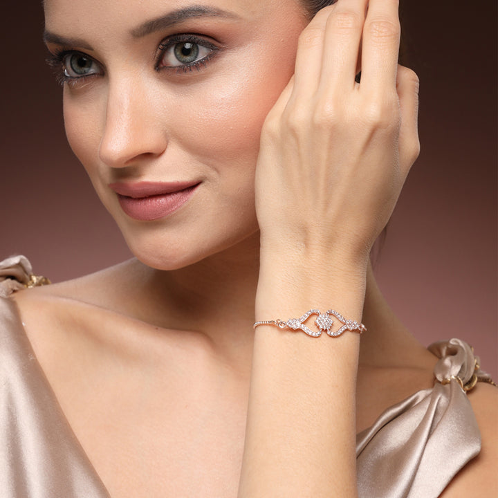 Luxary Rose Gold Plated CZ Heart Chain Bracelet – Premium Fashionable Jewelry for Weddings & Parties
