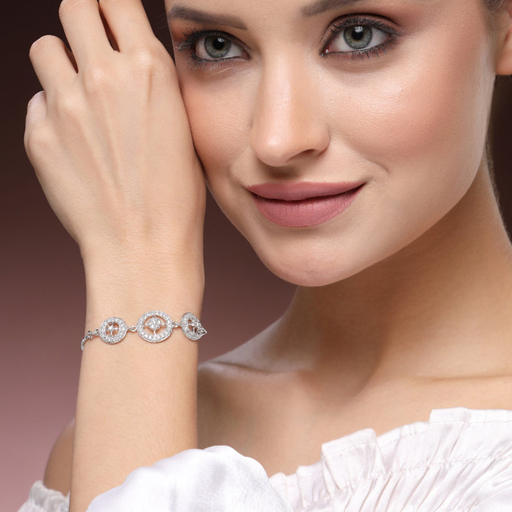 Luxury Cubic Zirconia Bracelet in Rhodium Plating – Designer Party & Festive Wear