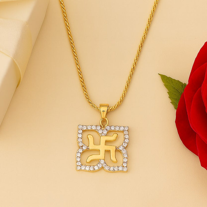 Estele - Gold Plated Swastika Shaped Pendant with Austrian Crystals for Women / Girls