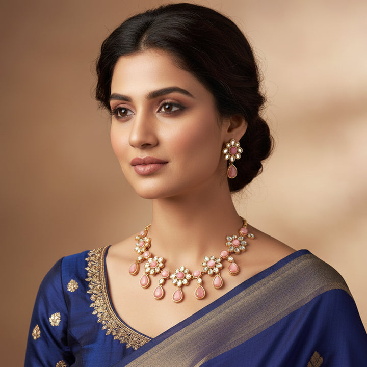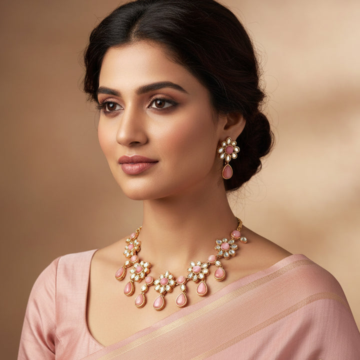 Estele Gold Plated Floral Designer Kundan Necklace Set for Women