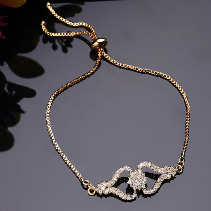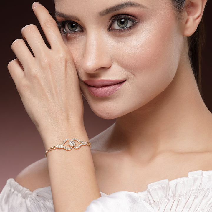 Premium Gold Plated American Diamond Marquise Cluster Chain Bracelet – Exclusive Lightweight Occasion Jewelry
