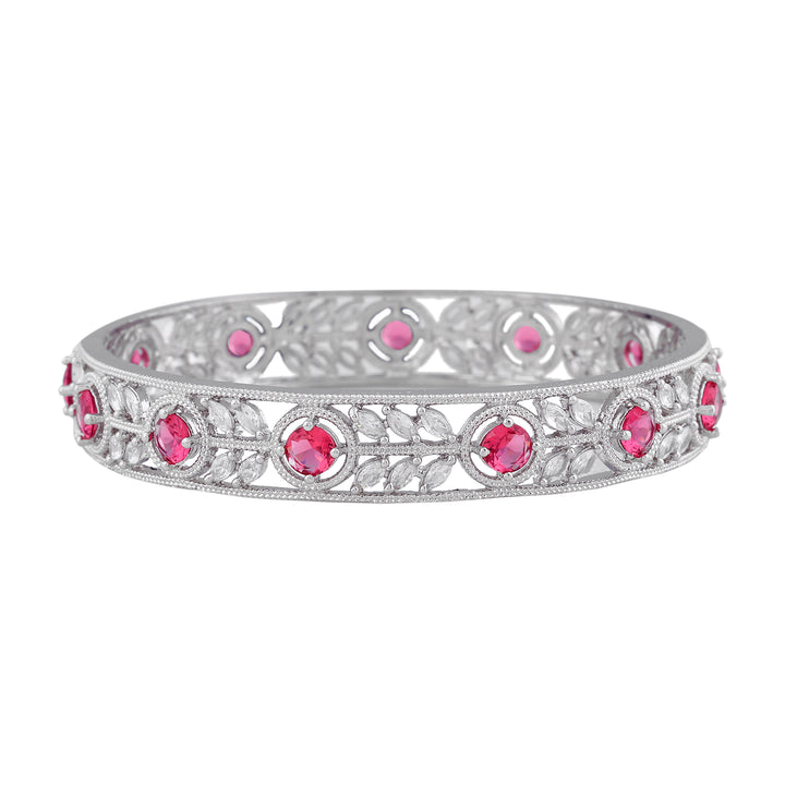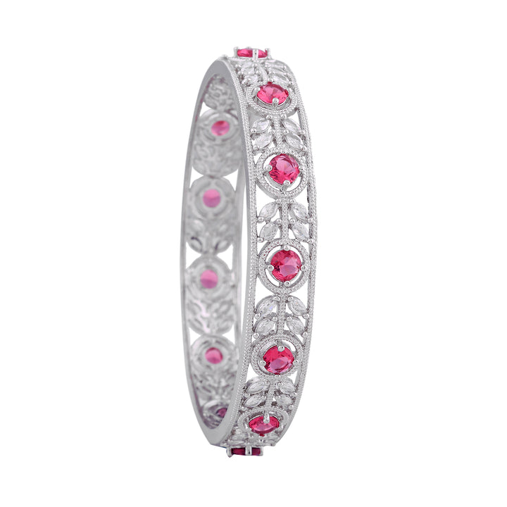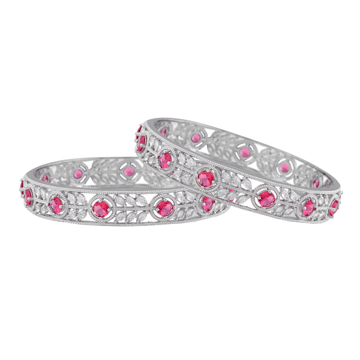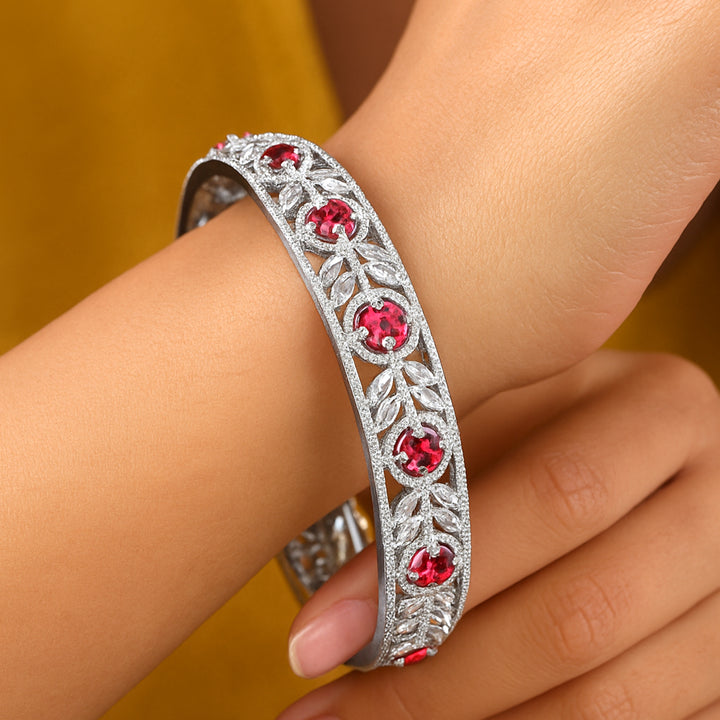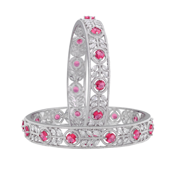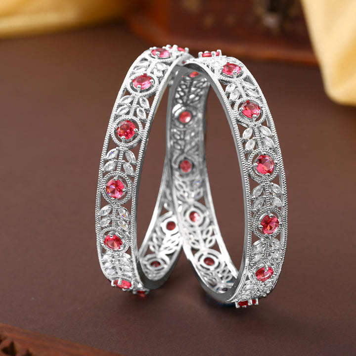 Silver Finish Designer Bangles|Size 2.6|Ruby CZ Sparkle|Perfect for Weddings & Festivals-OSAK008-IRRB26 BANGLE
