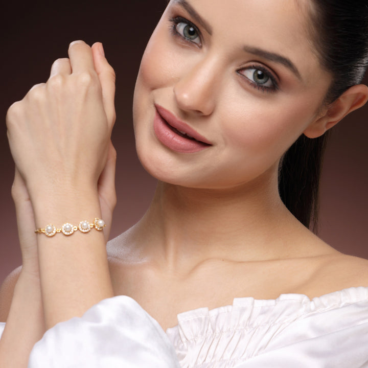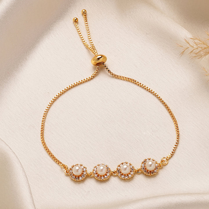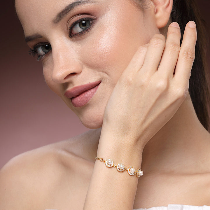 Stylish Gold Plated CZ & Pearl Chain Bracelet – Fashionable Jewelry for Everyday & Party Look