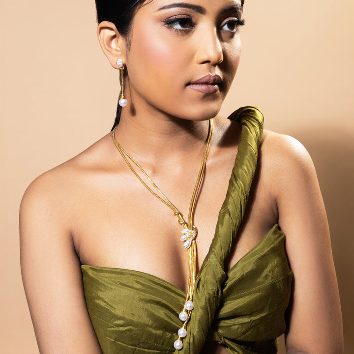 Estele Gold & Rhodium Plated Trendy Tassel Necklace set with White Pearls for Women